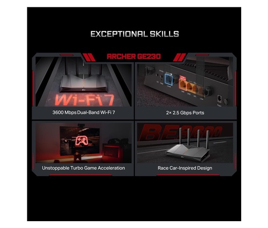 TP-Link Archer GE230 EasyMesh WiFi7 router (BE3600,2,4GHz/5GHz,1×2,5GbEWAN,1×2,5GbELAN,3xGbE,1xUSB3.0)