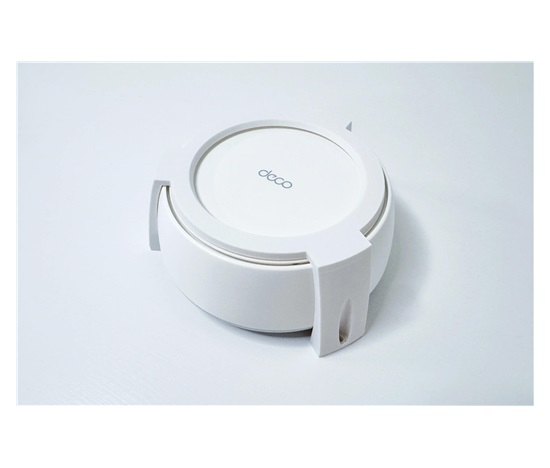 Plastový držák na stěnu a strop pro TP-Link DECO BE25 . Držák je vyroben z PETG materiálu na 3D tiskárně a má bílou barvu.