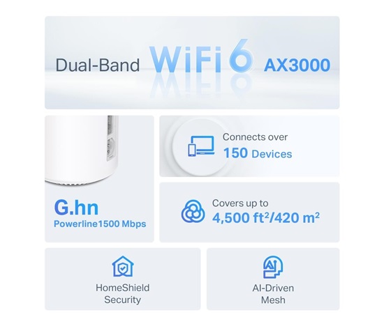 TP-Link Mesh Technology Powerline Technology 2 × dual-band antennas |