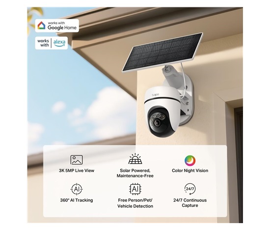 TP-Link Tapo C630 KIT venkovní kamera, solární panel (5MP, 3K, 1620p, IR 16m, WiFi, micro SD card, IP65)