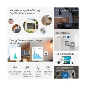 - Ovládání garážových vrat: Upgradujte svá garážová vrata pro chytré hlasové ovládání, dálkové ovládání a plynulou automatizaci, s možností nastavení jedinečného PIN kódu.