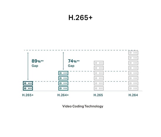- H.265+: Kamery přenášejí komprimovaný křišťálově čistý obraz, aniž by využívaly další šířku pásma, a šetří tak místo na disku, snižují zatížení sítě a náklady na monitorování – to vše bez snížení kvality obrazu.
