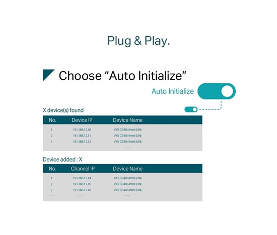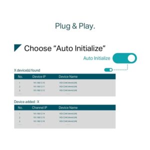 - Plug & Play – Umožňuje automatické přidávání nových a nepoužitých IP kamer VIGI do nového NVR a okamžitou aktivaci, takže instalace je rychlejší než kdykoli předtím.