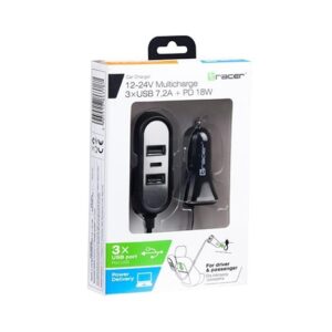 CAR CHARGER TRACER 12-24V MULTICHARGE 3XUSB 7,2A + PD 18W