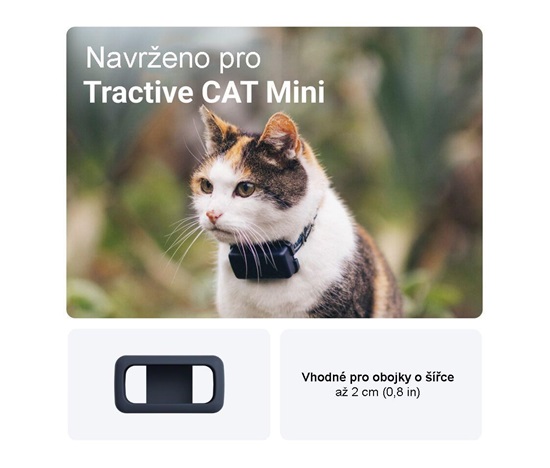 Držák byl speciálně navržen pro lokátor Tractive GPS CAT Mini, jeho kompatibilita s obojky je však téměř neomezená, – stačí, aby nebyly širší více než 2 cm.