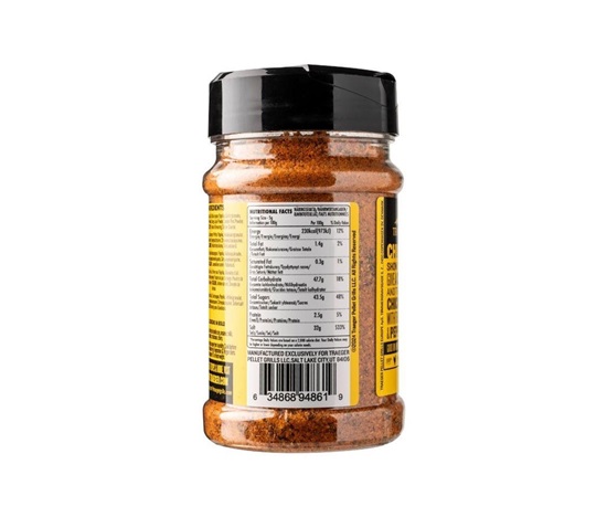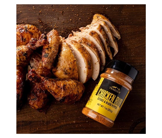 Od celého pečeného kuřete po krůtí burgery – dodávejte všem drůbežím pokrmům chuťový náboj s kořením Traeger Chicken Rub. Černý pepř a chilli prášek se spojují s citrusy a třtinovým cukrem a vytvářejí lahodně vyváženou přísadu do kuřecího masa a dalších drůbežích pokrmů.