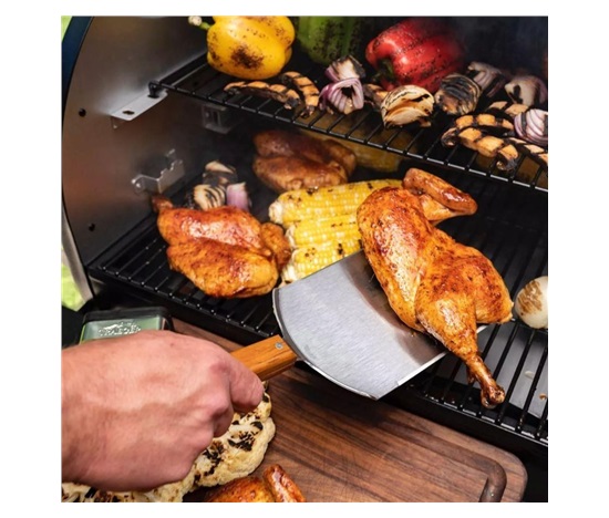 Když potřebujete přenést velký kus hovězího hrudí nebo celou stranu lososa, potřebujete špachtli Traeger XXL BBQ Spatula. Díky velkému povrchu a robustní rukojeti se na ni můžete spolehnout při přenášení i těch největších kusů masa a ryb.