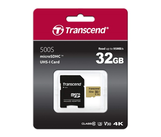 Pamäťové karty microSDXC/SDHC 500S od spoločnosti Transcend spĺňajú štandardy UHS Speed Class 3 (U3) a UHS Video Speed Class 30 (V30) pre videozáznamy v rozlíšení 4K Ultra HD s rýchlosťou čítania/zápisu až 95 MB/s a 60 MB/s.