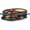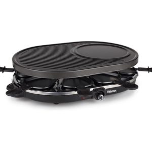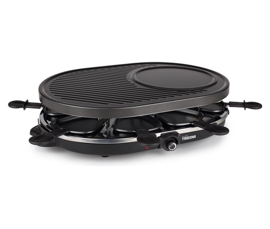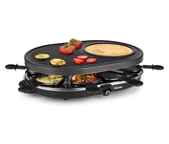 Raclette Tristar je velmi univerzální díky různým možnostem, které máte k dispozici. Můžete použít pánvičky pro labužníky s nepřilnavým povrchem, které můžete umístit pod grilovací desku. Horní část raclette tvoří grilovací deska s nepřilnavým povrchem, na které můžete grilovat nejrůznější ingredience. Díky kulatému tvaru grilovací desky na ní můžete také upéct dokonalé palačinky nebo omelety.