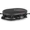 RA-2731 raclette je vhodný pro osm osob, přičemž si každý může vybrat, zda chce grilovat, nebo si pochutnat. Můžete samozřejmě použít i oba způsoby – například usmažit vajíčko ve formě na grilovací desce, kus masa na grilovací desce a nějakou zeleninu na pánvi. Raclette má pečicí plochu 43 x 30 cm a díky oválnému tvaru na plotýnku každý snadno dosáhne.