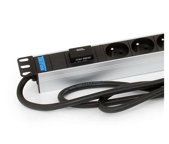 Úvod IT Síťové prvky Příslušenství k rozvaděčům TRITON 19″ rozvodný panel 24x230V zásuvka, 2m kabel,16A IEC60309, černý