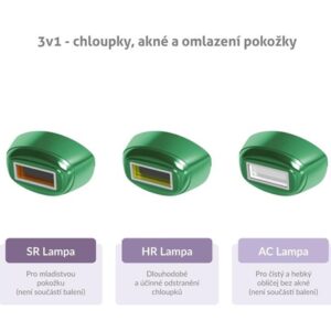 Epilátor TrueLife BELLE IPL E3 využijete kromě samotné epilace i k dalším aplikacím. Stačí pouze vyměnit lampu. K dlouhodobému a účinnému odstranění chloupků vám poslouží HR lampa, která je součástí balení. Nejednoho člověka trápí akné. Pokud chce mít obličej čistý a hebký na dotek, doporučujeme si pořídit AC lampu. Pokud chcete svoji pokožku omladit, pomůže vám s tím SR lampa.