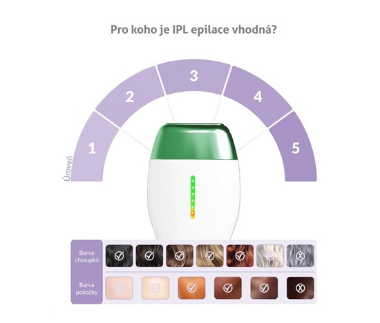 Pomocí ovládacího tlačítka si sami zvolíte požadovanou úroveň světla, která odpovídá vašemu typu pokožky.