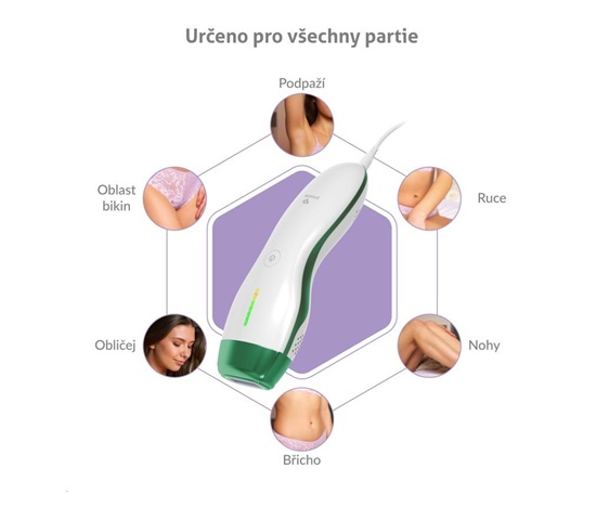 S epilátorem pohodlně ošetříte různé partie, od nohou, až po obličej nebo oblast bikin.