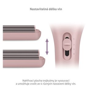 Nahřívací plocha trojkulmy je vysouvací a umožňuje zvolit ze čtyř různých nastavení délky vln.