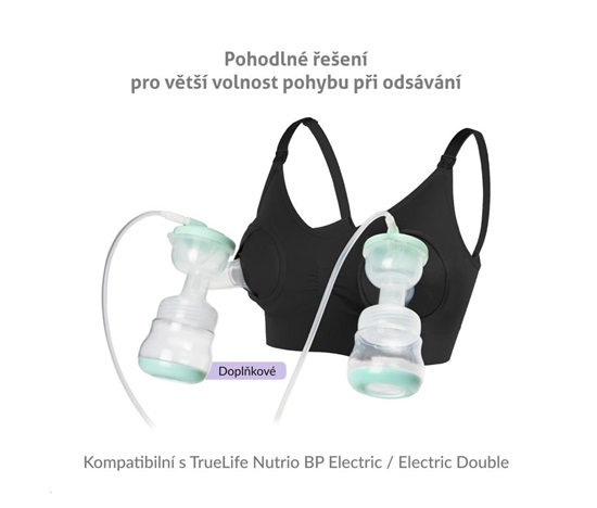 Nutrio Bra je speciální podprsenka, která slouží k uchycení elektrické odsávačky, například TrueLife Nutrio BP Electric Double, která odsává mléko z obou prsou zároveň. Kompatibilní je ale i s jinými odsávačkami. Díky použití speciální podprsenky spolu s odsávačkou máte při odsávání volné ruce a můžete tak pohodlně přepínat mezi jednotlivými režimy, nebo se věnovat jiným činnostem. Nutrio Bra zároveň slouží i jako běžná kojící podprsenka s odepínatelnými ramínky, kterou můžete nosit pohodlně celý den. Je dostupná ve čtyřech velikostech. Součástí balení je jedno prodloužené zapínání, obvod podprsenky si tak můžete nastavit dle vašich potřeb. Podprsenka je vyrobena ze směsi nylonu a spandexu, díky které je velmi příjemná pro pokožku. Podprsenku můžete bez obav prát v pračce.