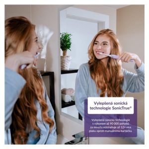 Díky vylepšené sonické technologii pracuje kartáček s dosud nejvyšším výkonem až 90 000 pohybů za minutu, díky čemuž odstraní až 12× více zubního plaku než manuální kartáček.