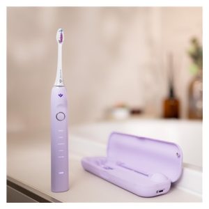 Chytré technologie pro tu nejlepší dentální péči se potkávají v TrueLife SonicBrush Clean70 UV, sonickém kartáčku v elegantní levandulové variantě, který odstraní s výkonem až 90 000 pohybů za minutu až 12× více zubního plaku než manuální kartáček. Sonická technologie SonicTrue pomocí jemných vibrací čistí plošky zubů a díky víření vody s pastou vytváří mikrobublinky, které proniknou i do mezizubních prostor. Tlakový senzor s technologií SmartPressure hlídá, abyste si přílišným tlakem na zuby a dásně nepřivodili zdravotní obtíže. Velkou službu vám prokáže také UV sterilizace ukrytá v dobíjecím pouzdře, která efektivně ničí až 99,9 % bakterií a virů z hlavice kartáčku. Hýčkat své zuby můžete doma i na cestách, a to až 70 dní na jedno nabití, pomocí 5 režimů čištění (Whiten, Clean, Sensitive, Shine, Massage) a 2 přiložených hlavic (Standard a Sensitive). Poslední použitý režim zůstává uchován v paměti a automaticky se spustí po opětovném zapnutí. Kartáček běží ideální 2 minuty, na něž je nastavený časovač. Díky vysoce citlivému vibračnímu senzoru se navíc automaticky aktivuje a rozsvítí, jakmile jej vezmete do ruky, stačí uchopit a můžete začít čistit. Speciální jemně pogumovaná povrchová úprava rukojeti je příjemná na dotek a zabraňuje klouzání i při použití s vodou.