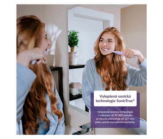 Díky vylepšené sonické technologii pracuje kartáček s dosud nejvyšším výkonem až 90 000 pohybů za minutu, díky čemuž odstraní až 12× více zubního plaku než manuální kartáček.