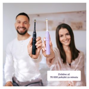 Produkt:Zubní kartáček; Počet programů:4; Počet pulzů za minutu:70 000; Výbava:Časovač, Pouzdro, Tlakový senzor, Náhradní hlavice; Barva:Černá, Fialová; Napájení:Baterie; Určení:Dospělí