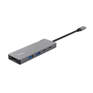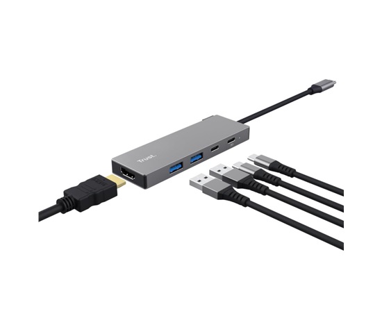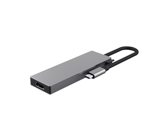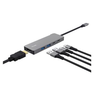 Multiportový adaptér 5v1 pro přidání portů HDMI, USB-C a USB-A k notebooku pomocí jediného připojení USB-C.