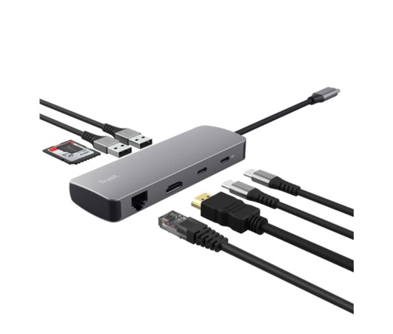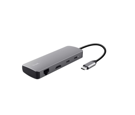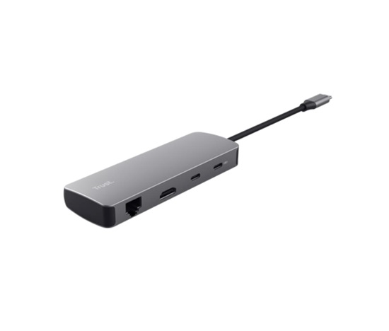 TRUST Dokovací stanice DALYX USB-C, 8v1, HDMI, RJ45, 2xUSB-C, 2xUSB-A, microSD/SD karta, šedá