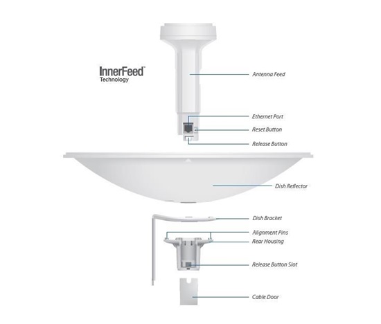 InnerFeed™ technologie integruje rádiovou část do zářiče od antény čímž odpadá potenciální ztráta na RF kabelu.