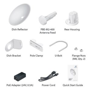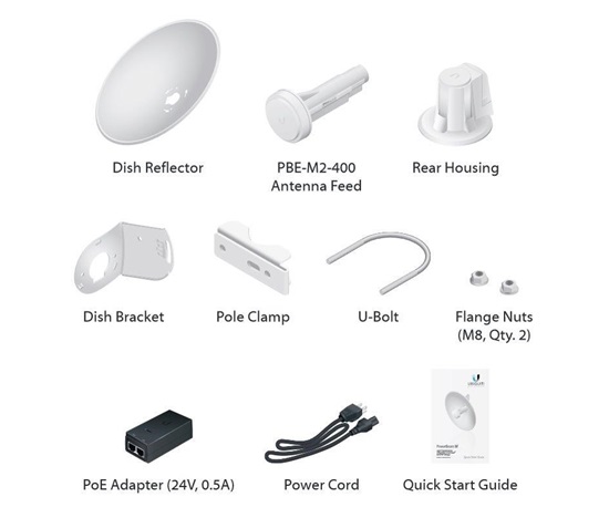 Uvnitř PowerBeamu se nachází výkonný MIPS procesor Atheros 74KC s frekvencí 560MHz, kterému sekunduje 64MB operační paměti typu DDR2 a 8MB Flash paměť. Síťový port podporuje 10/100 Ethernet a lze po něm jednotku napájet pasivním PoE 24V/0,5A (aktivní PoE dle 802.3af není podporováno). Teoretická maximální propustnost jednotky je 300Mbit (MCS15, 802.11n, 2×2 MIMO, při šířce kanálu 40MHz).