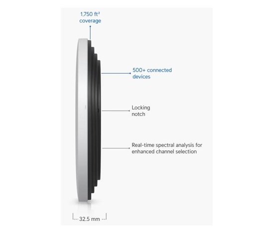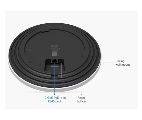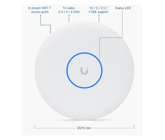 Ubiquiti U7 Pro XGS je nový WiFi 7 UniFi AP. Jedná se o tri-band access point s rychlostí přenosu 5,8Gbps v pásmu 6GHz, až 8,6Gbps v 5GHz pásmu a až 688 Mbps v pásmu 2,4GHz a pokročilým šifrováním WPA3. U7-Pro-XGS je určeno k WiFi pokrytí vaší domácnosti, kanceláře, hotelových prostor nebo skladu s podporou až 500+ připojených klientů. Plná podpora roamingu zajišťuje plynulé předávání připojených klientů mezi jednotlivými AP. Pro připojení do sítě je AP vybaveno 10G ETH portem, který slouží i pro napájení pomocí PoE 802.3at nebo pasivním PoE v rozsahu 42,5-57V DC, PoE injektor není součástí balení.