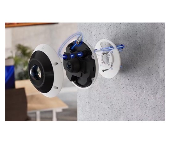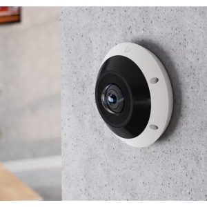 All-weather, vandal-resistant 12MP PoE camera with panoramic 360° coverage, digital pan-tilt-zoom functionality, and smart IR functionality.