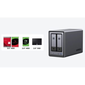 UGREEN NAS je kompatibilní s extrémně širokou škálou úložných disků, včetně 3,5„/2,5“ SATA disků a M.2 SSD. Podporovány jsou všechny nejoblíbenější značky pevných disků a neexistuje žádné omezení na konkrétního výrobce.