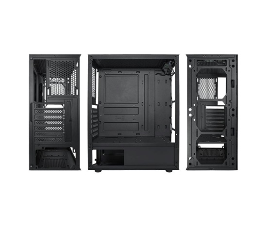 Provedení skříně:Midi Tower; Barva skříně:Černá; Počet pozic 3.5″ (HDD):2; Počet pozic 2.5″ (SSD):2; Bočnice:Prosklená