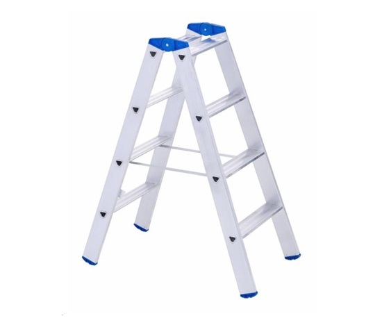Hliníkové štafle neboli konický žebřík 2×4 (4+4) PROFI se širokou základnou pro optimální stání je vyrobený z lisovaných profilů pro nejvyšší stabilitu.