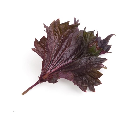 Fialový Shiso: Výrazná chuť s tóny bazalky, anýzu a máty, vhodné do sushi, salátů a nakládané zeleniny. Má antibakteriální vlastnosti, podporuje trávení a obsahuje mnoho antioxidantů.