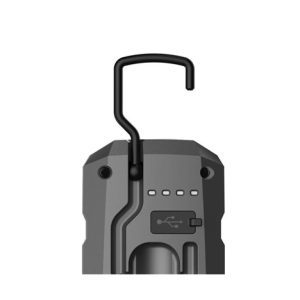 - Praktické možnosti uchycení: Baterka je vybavena háčkem na horní části pro snadné zavěšení, magnetem na spodní straně pro připevnění k kovovým povrchům a ohebným držákem, který umožňuje postavení baterky do požadovaného úhlu.
