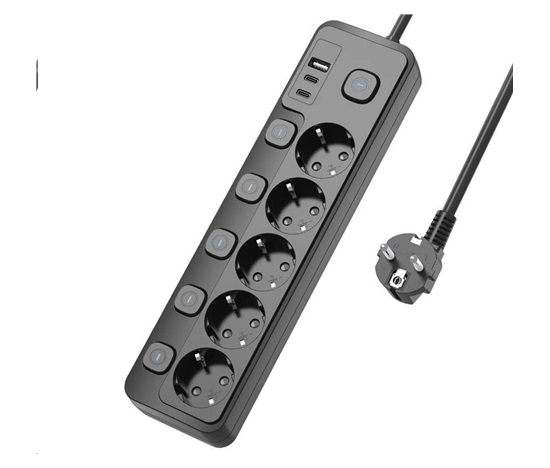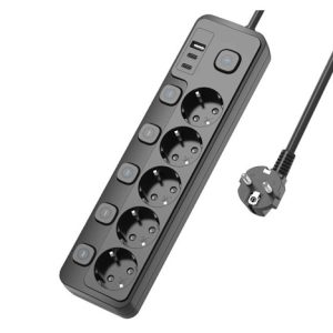 Prodlužovací zásuvka Viking YC53 disponuje 5 AC výstupy a 3 USB porty, což umožňuje nabíjení až 8 zařízení najednou. Díky individuálním tlačítkům ON/OFF pro každý výstup a kompaktnímu designu s kabelem o délce 1,5 m je ideální pro použití ve vaší domácnosti nebo kanceláři.