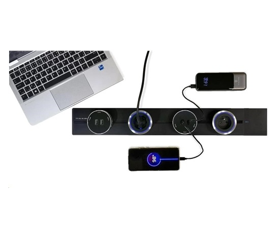 - Bezpečný a robustní design: Zásuvková lišta je vyrobena z odolné hliníkové slitiny, která zajišťuje dlouhou životnost a ochranu proti přehřátí. Těsnicí pásek chrání proti prachu a náhodnému dotyku, což snižuje možnost úrazu elektrickým proudem.