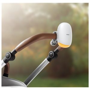 Vnitřní motorek vytváří po upevnění na kočárek pomocí flexibilní úchytky jemný houpavý pohyb.