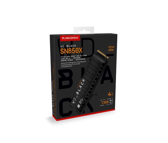 WD BLACK SSD NVMe 4TB PCIe SN850X Powered by SanDisk, Gen4, (R:7300, W:6600MB/s), Chladič