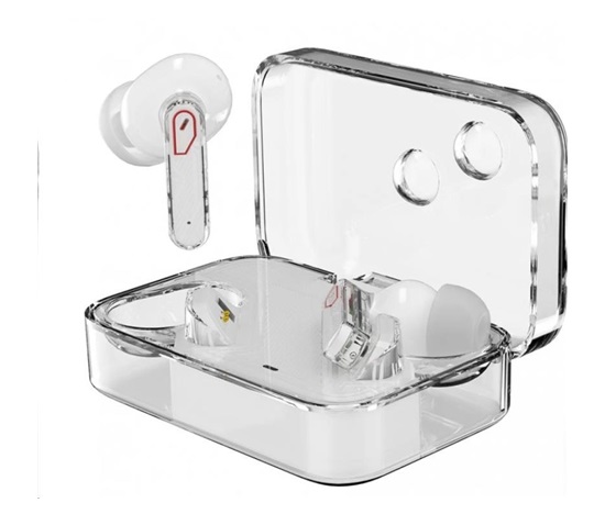Obsah balení: Nabíjecí pouzdro, 2x sluchátko, 2x náhradní silikonové špunty, kabel Type-C 30cm, návod k použití.
