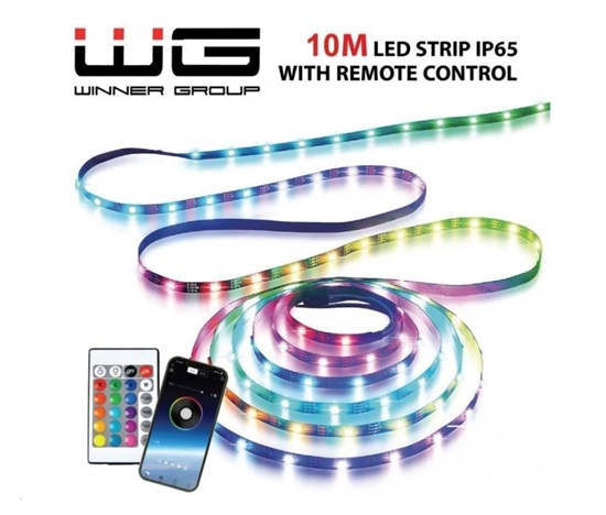 WG – Chytrý LED pásek WG16, 10 metrů, s ovladačem i aplikaci, IP 65, se síťovým adaptérem