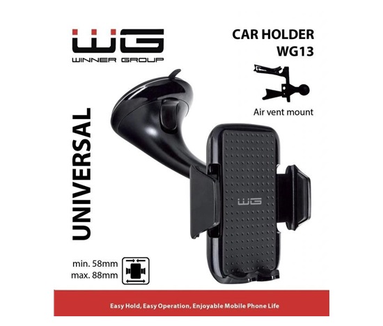 Úvod Elektronika Mobilní telefony a tablety Příslušenství k Mobilům a Tabletům WG – Držák do auta WG 13, na sklo, černá