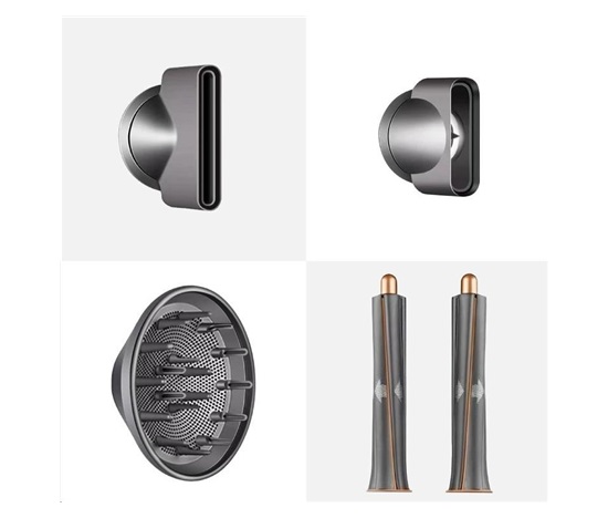 • 2× obousměrné Airwrap nástavce – dvojice nástavců pro natáčení vlasů ve dvou směrech, využívá proud vzduchu pro jemné tvarování bez extrémního tepla, vhodné pro vytváření vln a kadeří