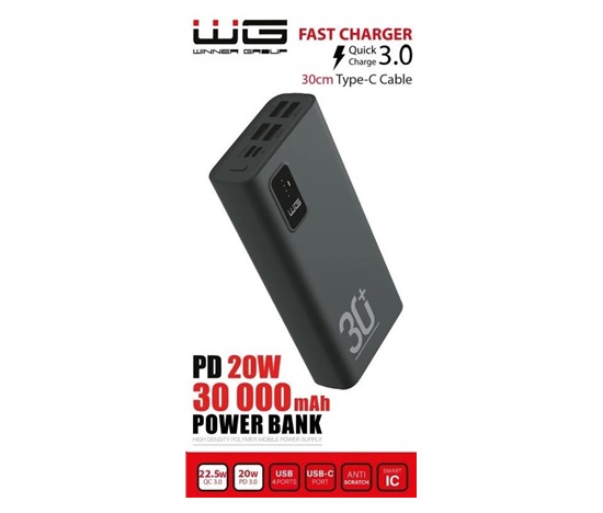 WG – Power Bank 30000 mAh, USB-C PD 20W, černá