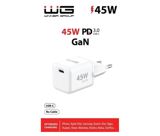 WG – Síťová nabíječka GaN 1x USB-C, PD PPS 45W, bílá