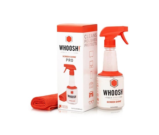 Čistící sprej WHOOSH! SCREEN SHINE hned po nanesení dokáže rozpustit většinu olejů a biofiltrů, které pak pomocí antibakteriálního hadříku z ultra tenkých mikrovláken z povrchu bezezbytku setřete. Přípravek na povrchu zároveň nechává ochranný film, díky kterému se na něm další nečistoty udrží jen velmi těžce a vaše displeje, brýle nebo televizní obrazovky odolají prachu, otiskům prstů i nechtěným bakteriím.