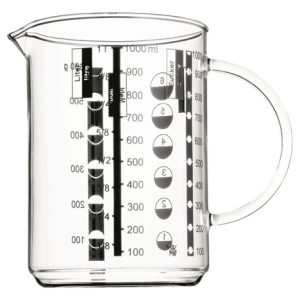 • Tepelně odolné sklo: Vyrobeno z vysoce kvalitního skla, které odolává vysokým teplotám, což umožňuje odměřování horkých tekutin přímo z hrnce.