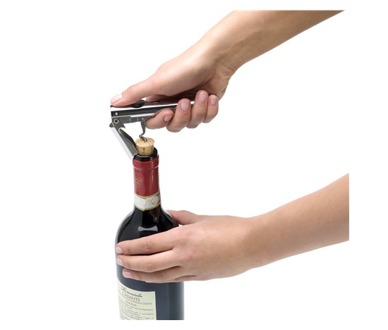 - Bezproblémové odstranění dlouhých zátek pomocí dvoustupňové pákové vývrtky.
