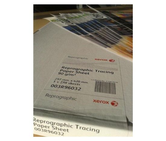 Úvod IT Kancelářská technika Tisková média Xerox Pauzovací papír 90 – 297×420 (90g/250 listů, A3) – řezané listy