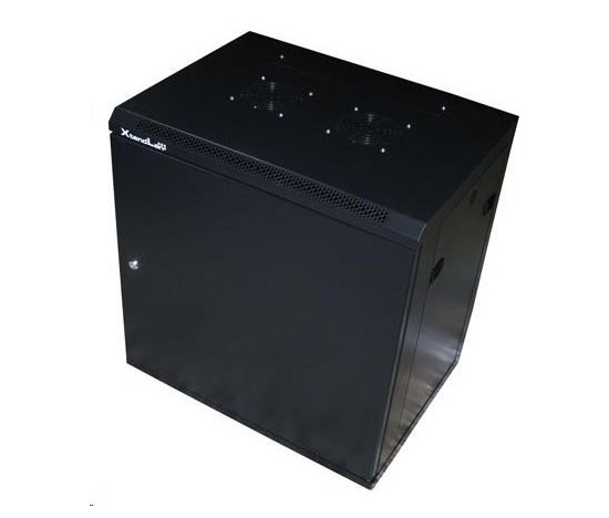 XtendLan 19″ nástěnný rozvaděč 12U 600×450, nosnost 60kg, plné dveře, svařený, proti vykradení,černý